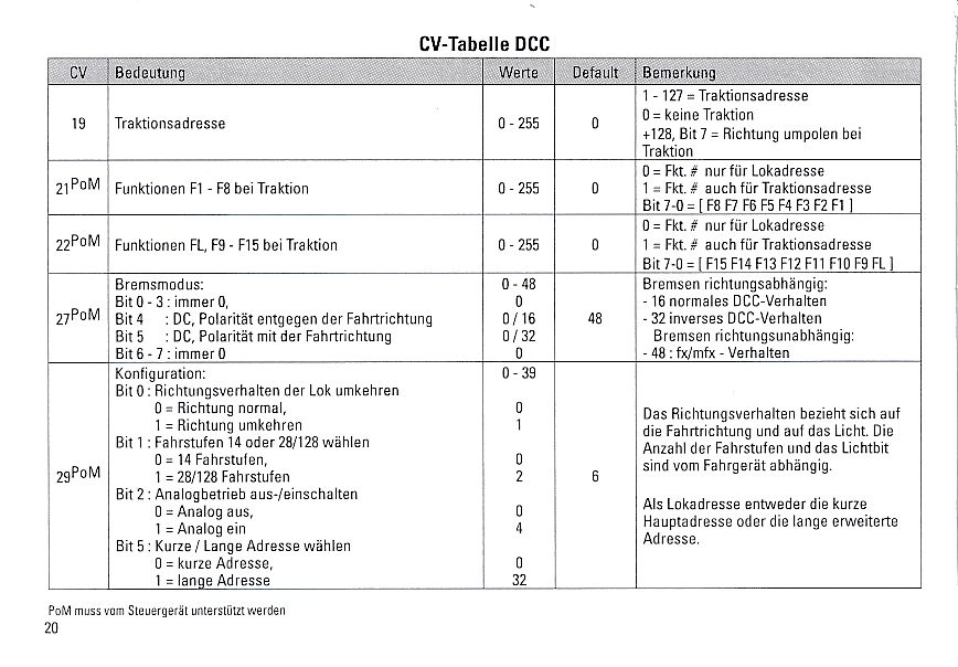 Märklin Nachrüstdecoder - CV Tabelle für DCC