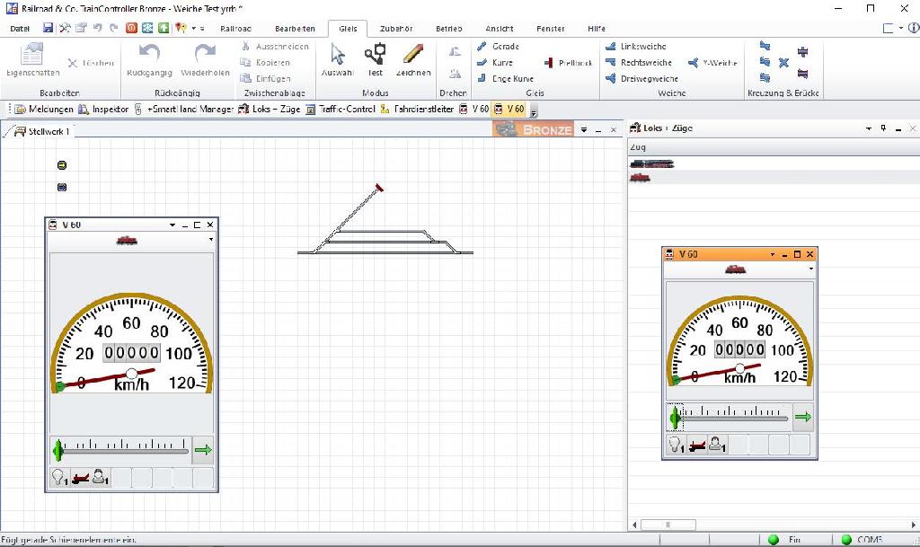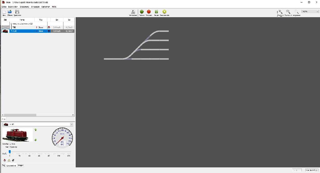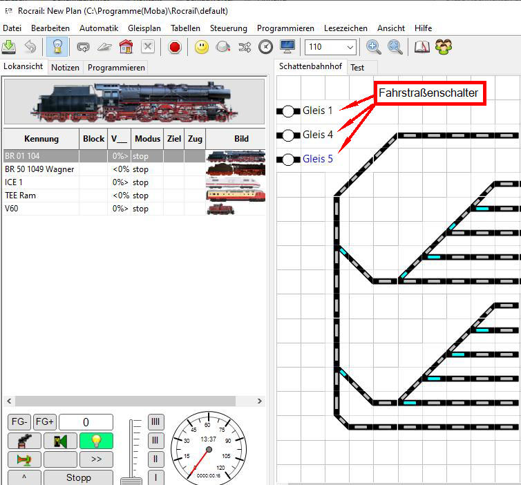 Schon ist die manuelle Weichenstraße eingerichtet. Kurzer Test auf das Weichenstraßen Symbol und die Weichen schalten alle korrekt ins richtige Gleis.