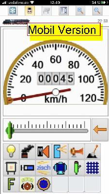 Die Mobilversion (plus 29,-€) entspricht dem Fahrregler der Desktop Version – Hier kann aber über ein Lupen Plus und Minus Symbol die Anzeige vergrößert bzw. verkleinert werden. Was gerade beim Gleisplan sehr sinnvoll ist.