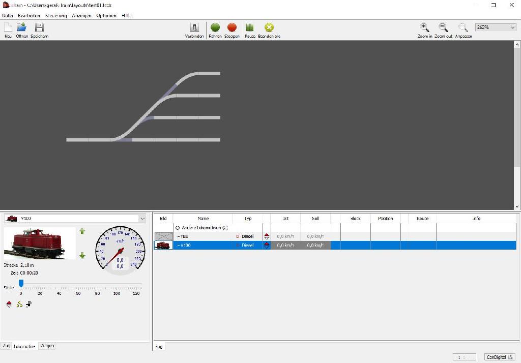 Noch ein wichtiger Hinweis: Als einzigstes Programm in der Runde ist der Anschluss einer MS2, CS oder sonstigen Steuereinheit zwingend notwendig – ohne diese Steuereinheiten funktioniert Train Controller nicht. Außerdem muss vor dem Start die Digital Zentrale eingeschaltet sein, sonst kommt es oft vor das das Programm sich aufhängt – teilweise sogar einen Neustart des Computers nötig ist.