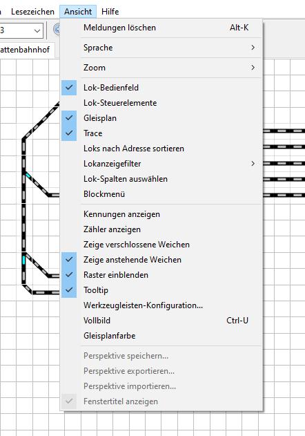 Wie bereits erwähnt, kann es natürlich mehrere Gleispläne geben, fest angedockt und über Registrierkarte anwählbar oder frei positionierbar. Skalierbar und drehbar sind die Gleispläne egal in welcher Position ebenso, wie auch die Farben, oder Raster änderbar sind. Die Bestandteile des Gleisplanes (Weichen, Kurven, Gerade etc.) sind allerdings auch einfach gehalten. Wobei hier im Gegensatz zu RailControl mehr Symbole zur Auswahl stehen.