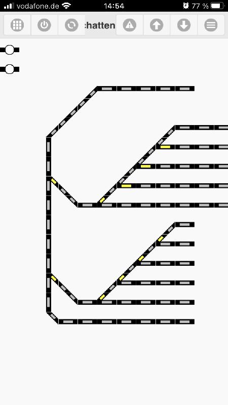 - Schalten von Fahrstrassen für meinen Schattenbahnhof – Einfach manuell – Hier stelle ich mir einfach nur vor, ich klicke ein entsprechendes Gleis an (oder über einen Taster) und alle Weichen stellen sich automatisch für dieses Gleis ein.
