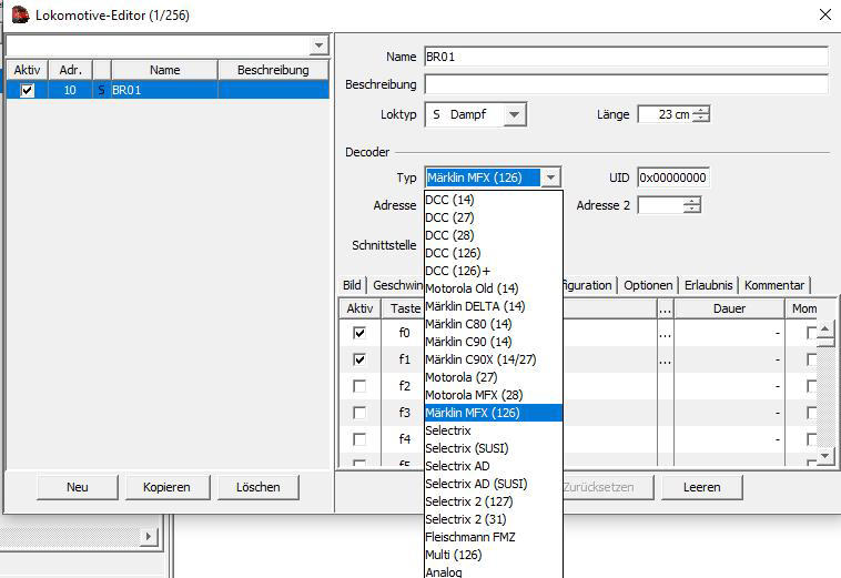 Eine Liste aller möglichen Systeme findet ihr hier: Link2. Lokomotive anlegen