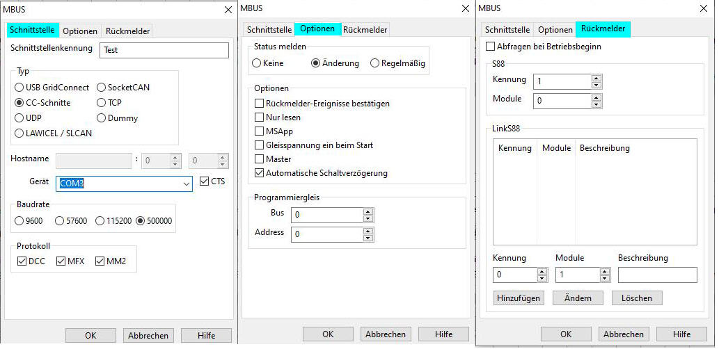 Vor weg, bei allen 4 Programen funktioniert die Anbindung recht einfach und geht problemlos. Wie bereits im Teil 1 beschrieben, ist meine Hardware eine CC Schnitte vom Can Digital Bahn Projekt die an einer Märklin Gleisbox angeschlossen ist und über USB mit dem PC verbunden ist. Als zusätzliche Steuereinheit dient eine Märklin Mobile Station 2