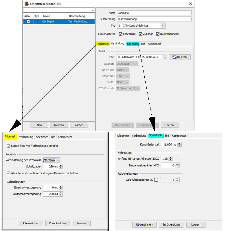 Anlage verbinden - Lokomotiven anlegen und Einstellungen