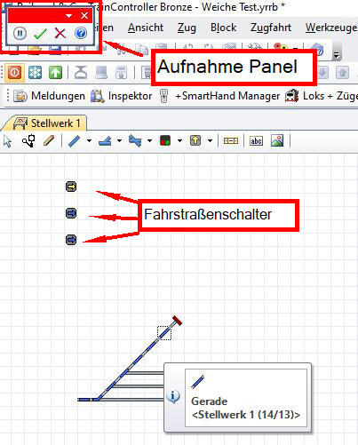Um eine Weichenstraße manuell zu erstellen, war Hilfe aus dem Forum notwendig, da das Handbuch hier (zumindest für die Bronze Version) fehlerhafte bzw. unzureichende Informationen gab.