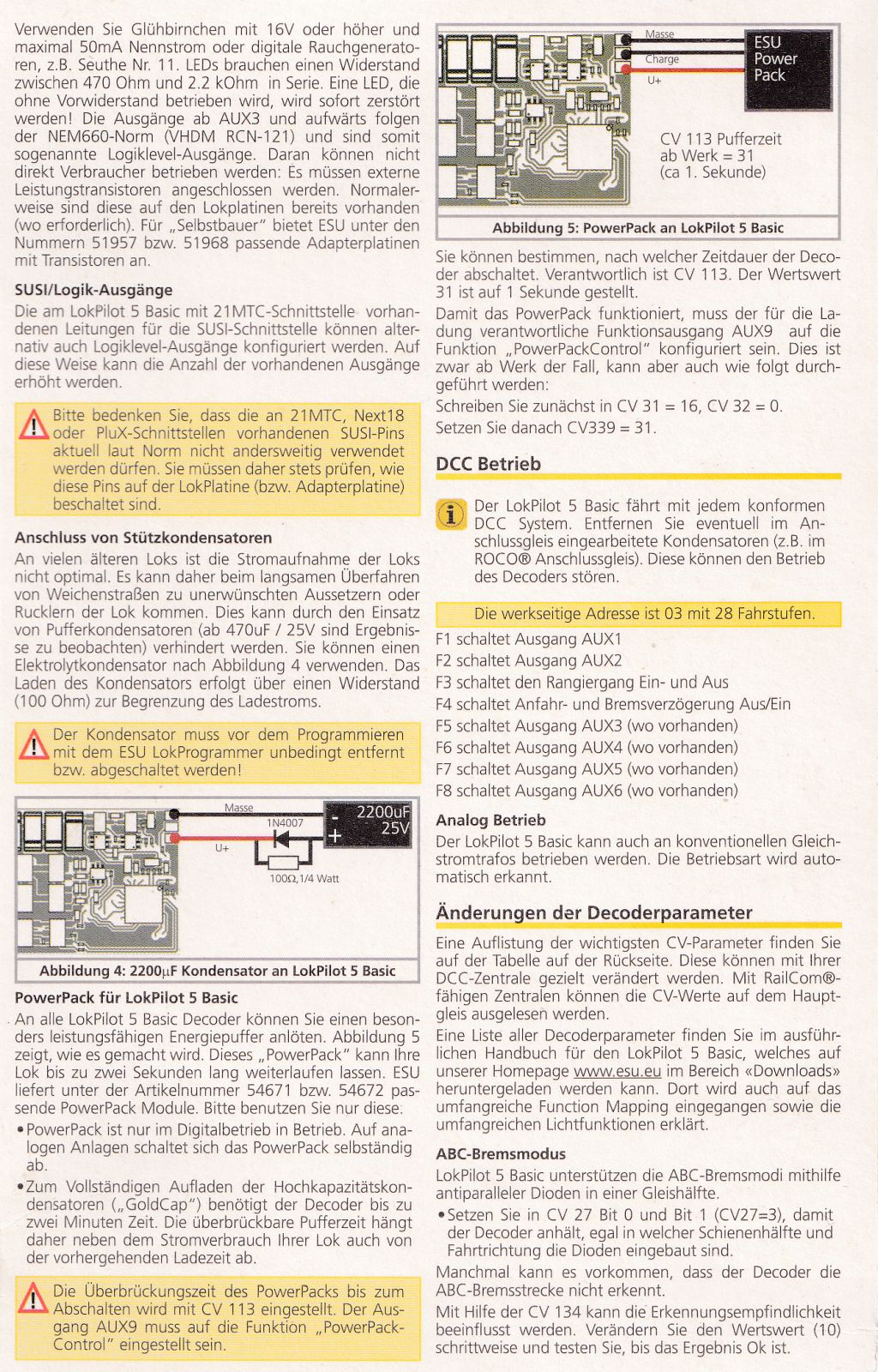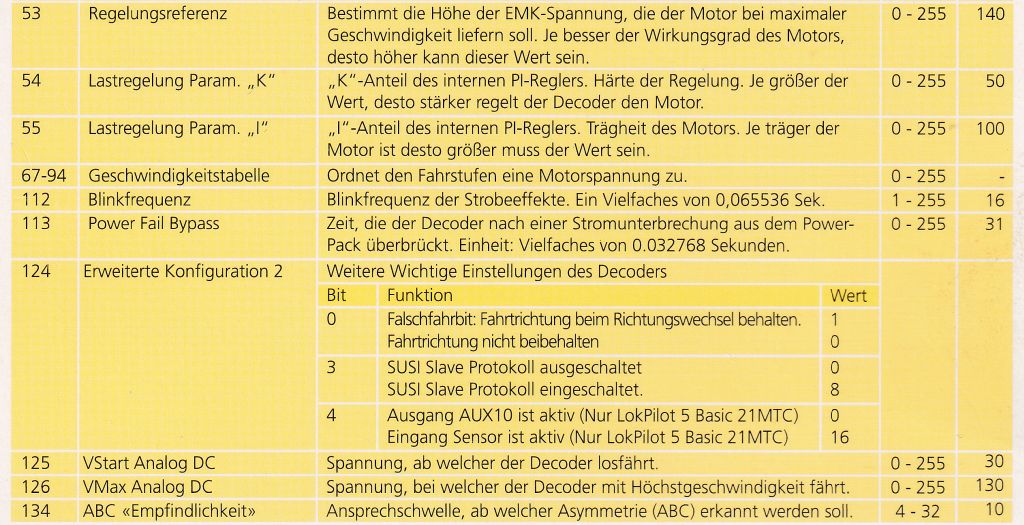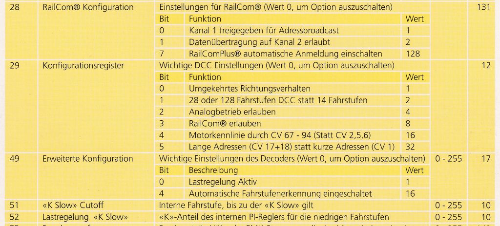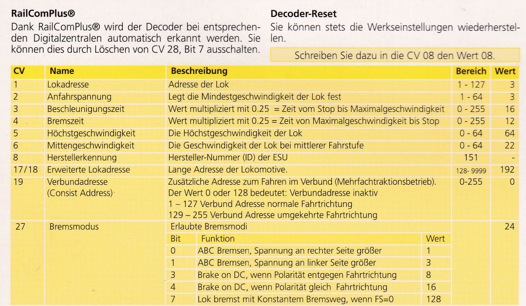Einbauanleitung und CV Tabelle