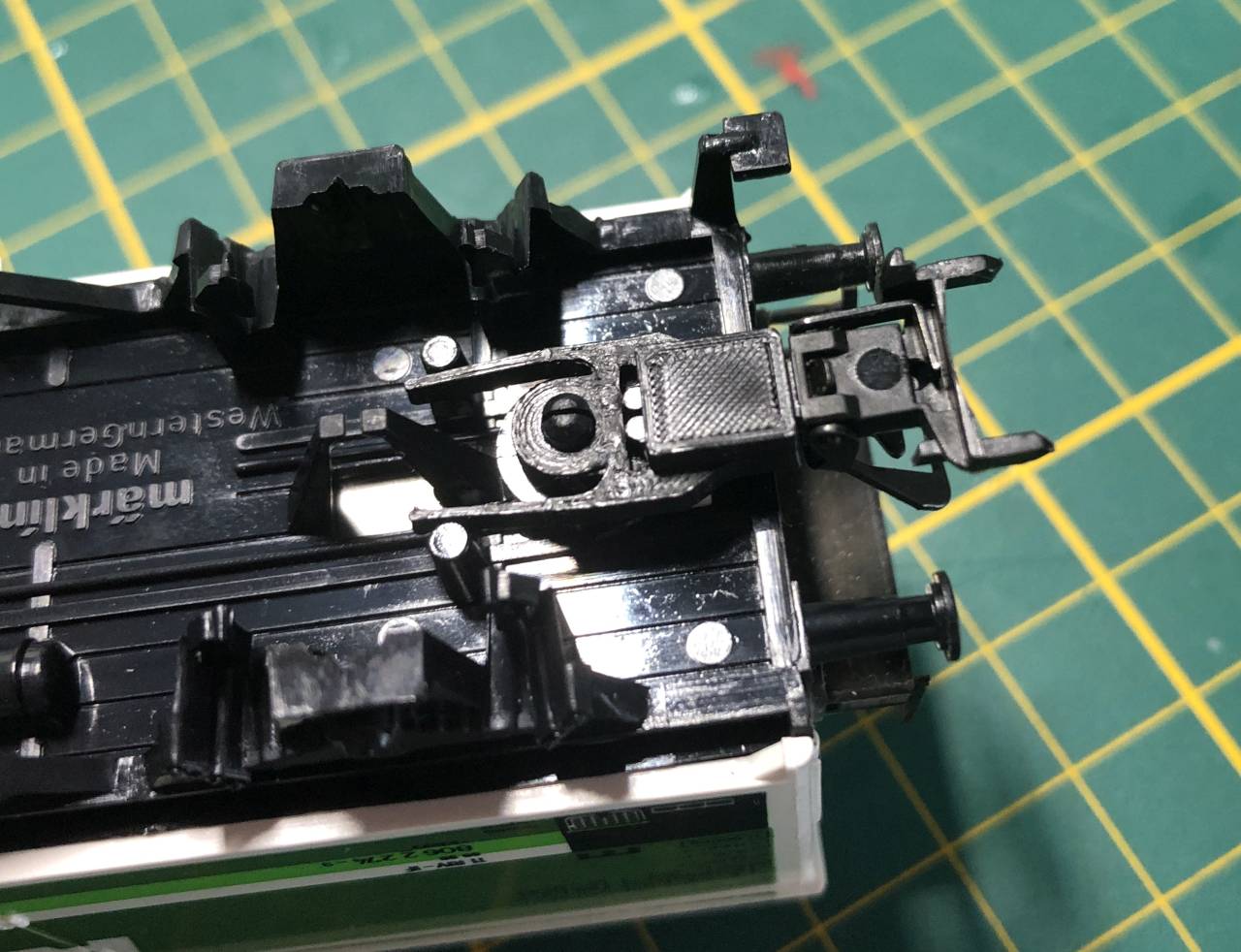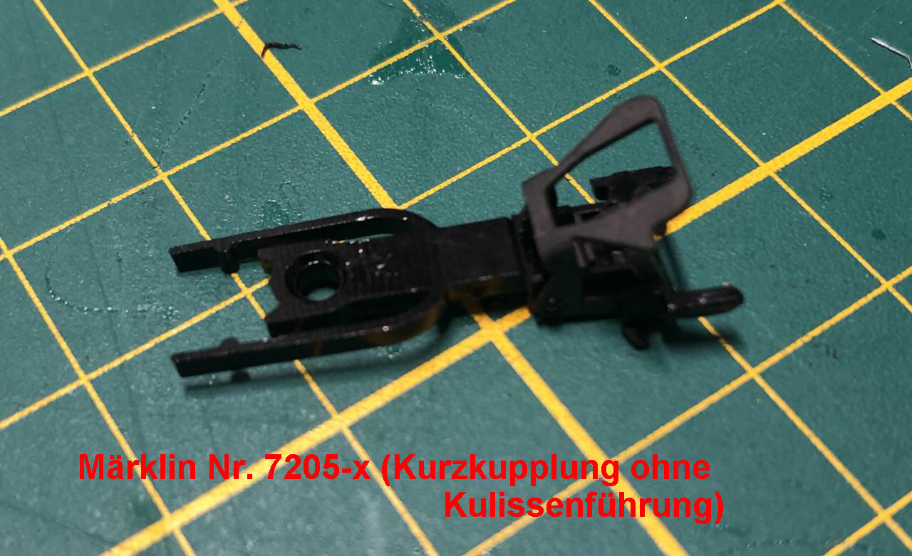 Im Gegensatz zur Märklin Variante Nr.. 7205 (Kurzkupplung ohne Kulissenführung) können hier auch andere Kupplungen, wie Roco, Fleischmann oder Magnetkupplungen verwendet werden.