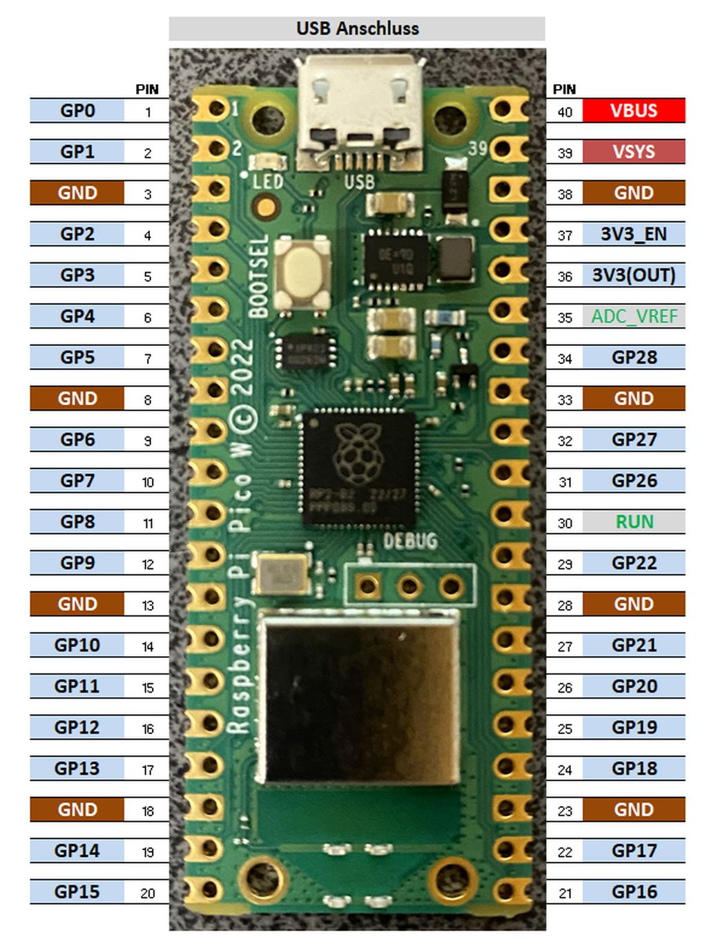 Raspberry PICO W - Pinbelegung