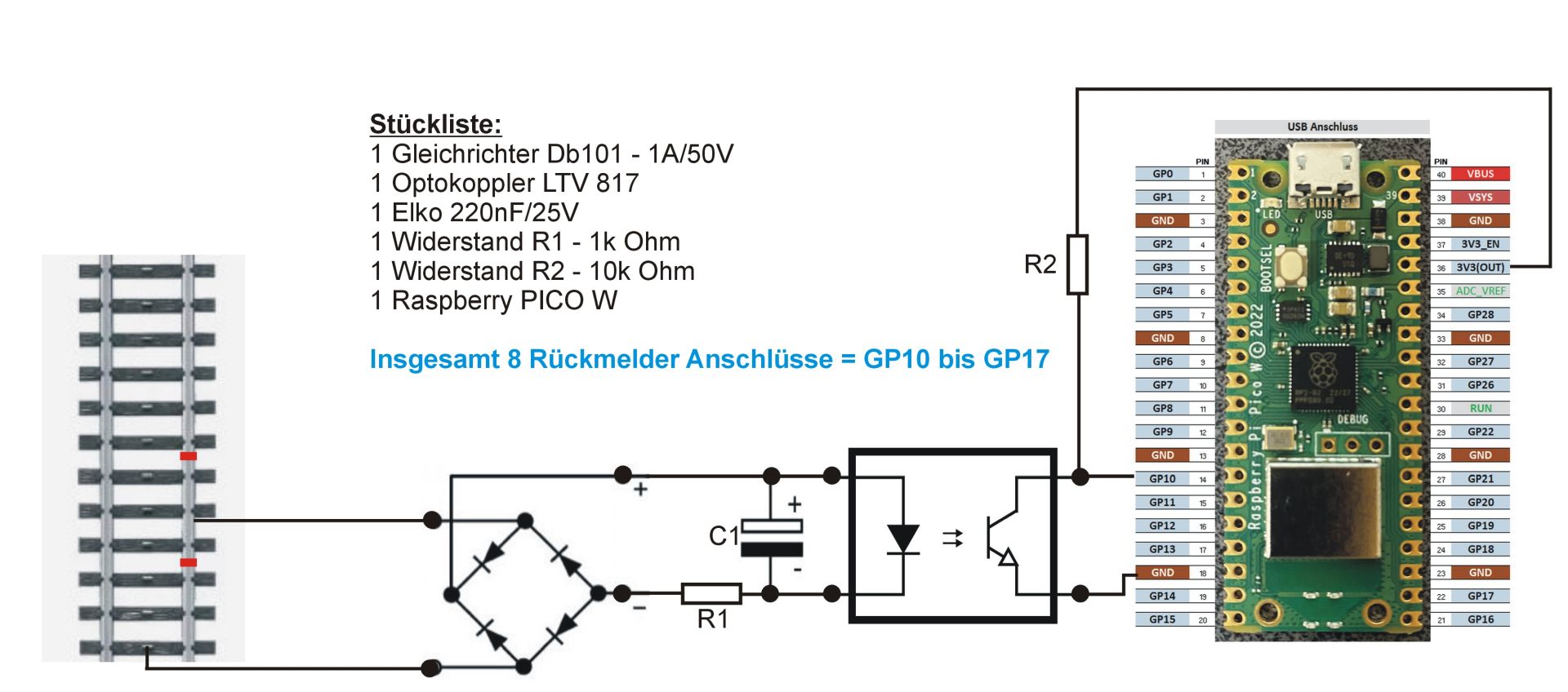 Rückmelder für 3-Leiter mit Raspberry Pico W
