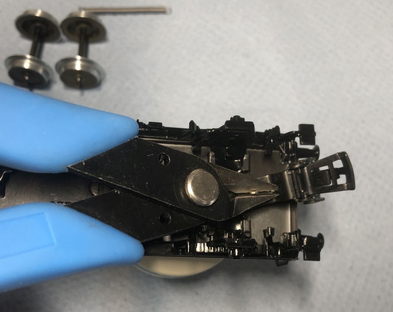 Nun nur noch die vorhandene Feder einhängen und die Kurzkupplungen aufstecken, sowie die Räder montieren.